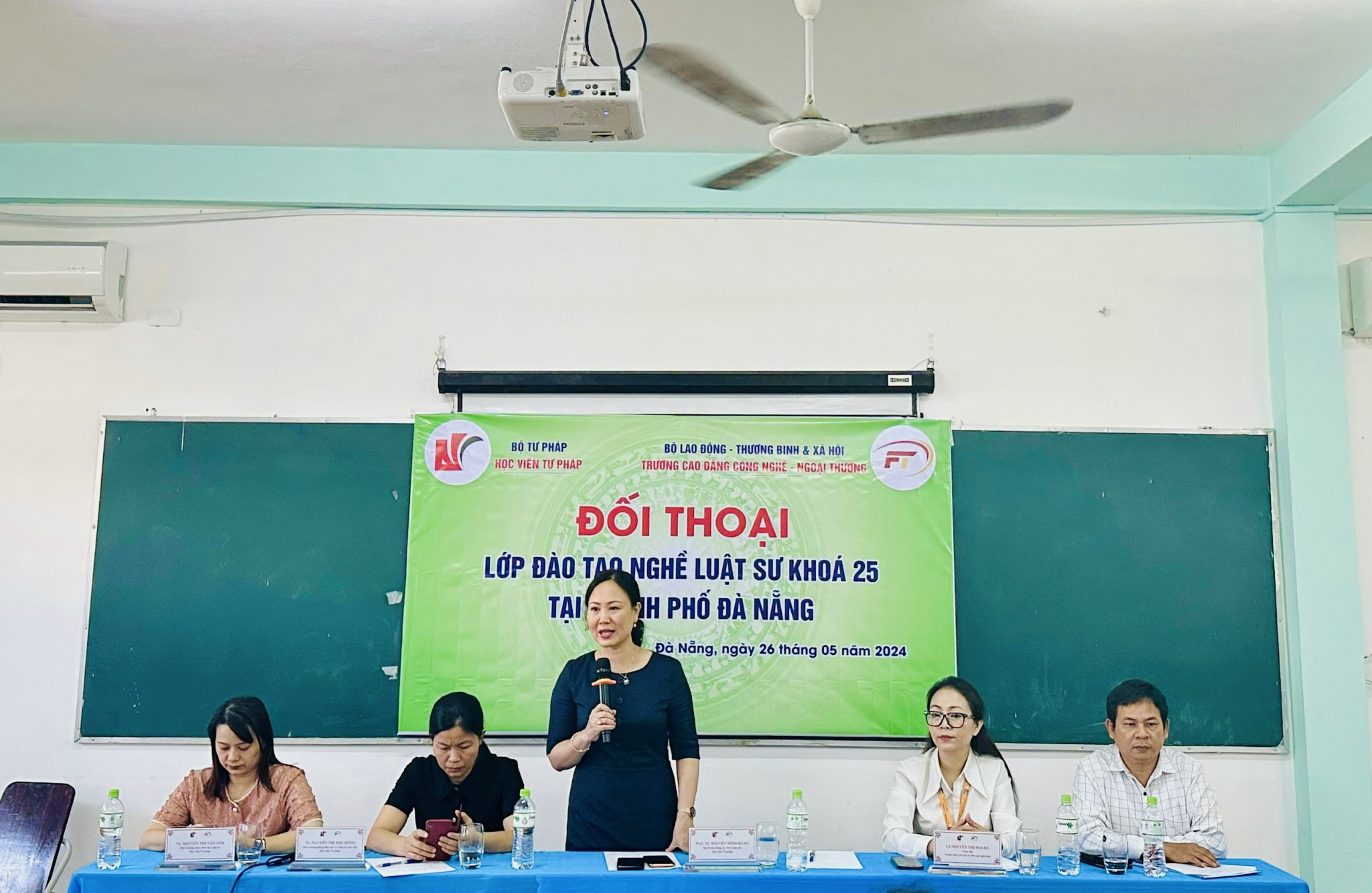 Chiều ngày 26/05/2024 Học viện Tư pháp phối hợp với Trung tâm Liên kết và Đào tạo ngắn hạn – Trường Cao đẳng Công nghệ – Ngoại thương tổ chức buổi đối thoại giữa lãnh đạo Học viên Tư pháp với học viên lớp Đào tạo nghề Luật sư khóa 25 học tại Trường Cao đẳng Công nghệ – Ngoại thương. Buổi đối thoại nhằm tạo ra cơ hội giúp Lãnh đạo Học viện Tư pháp, Trung tâm Liên kết và Đào tạo Ngắn hạn trường Cao đẳng Công nghệ – Ngoại thương và các bạn học viên có cơ hội trao đổi các vấn đề cùng nhau. Đặc biệt, giúp Nhà trường kịp thời nắm bắt và giải quyết những khó khăn, vướng mắc của học viên trong quá trình học tập, rèn luyện tại trường và giúp nâng cao chất lượng đào tạo và phục vụ đào tạo.
