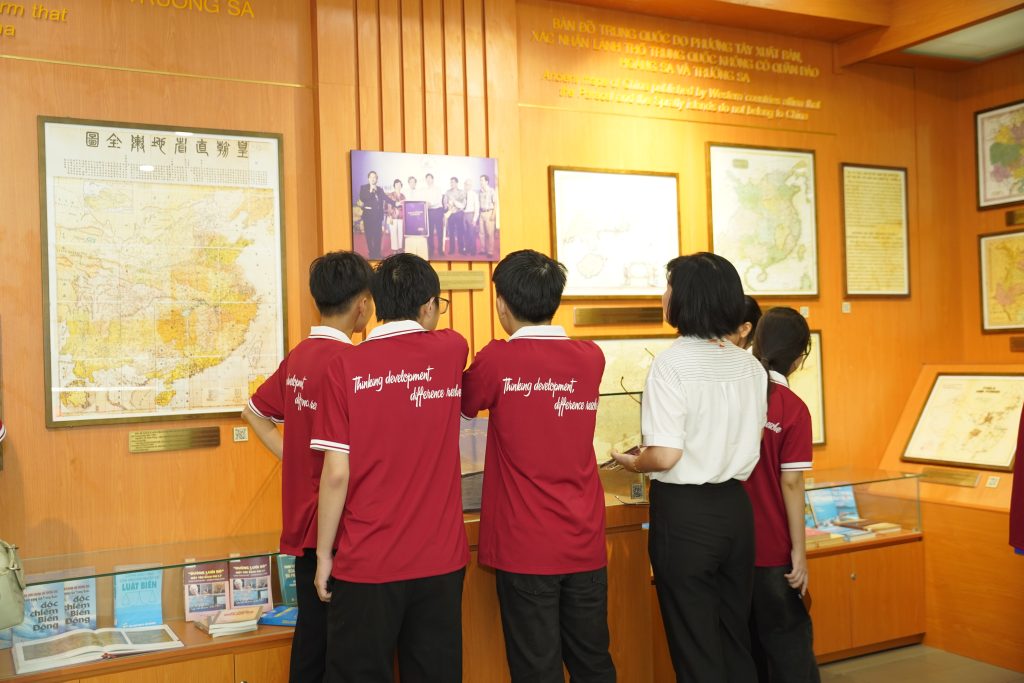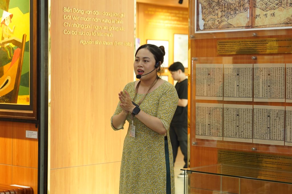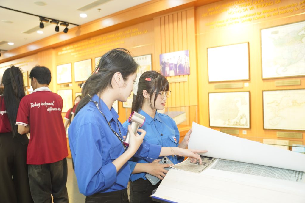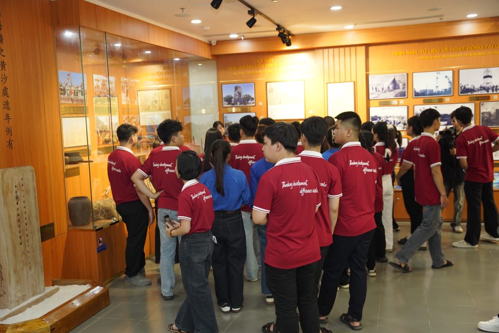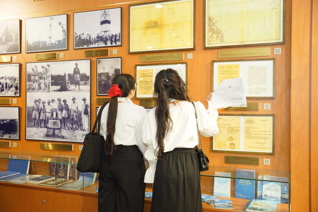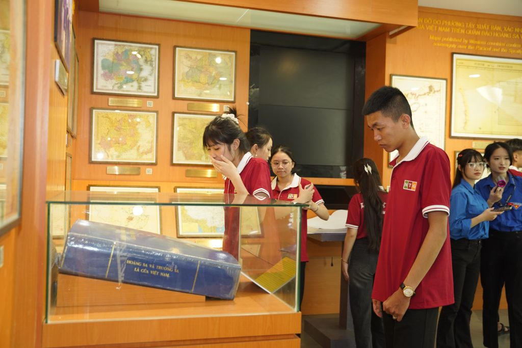Tại không gian trưng bày, cán bộ, giảng viên, đoàn viên thanh niên cùng hơn 400 tân sinh viên Khóa 20 đã được tiếp cận nguồn tư liệu – hiện vật quý: mộc bản, bản đồ cổ, văn bản hành chính, nhật ký hải trình, hình ảnh tư liệu… minh chứng quá trình xác lập, thực thi và bảo vệ chủ quyền của Việt Nam đối với quần đảo Hoàng Sa – Trường Sa qua nhiều thời kỳ.